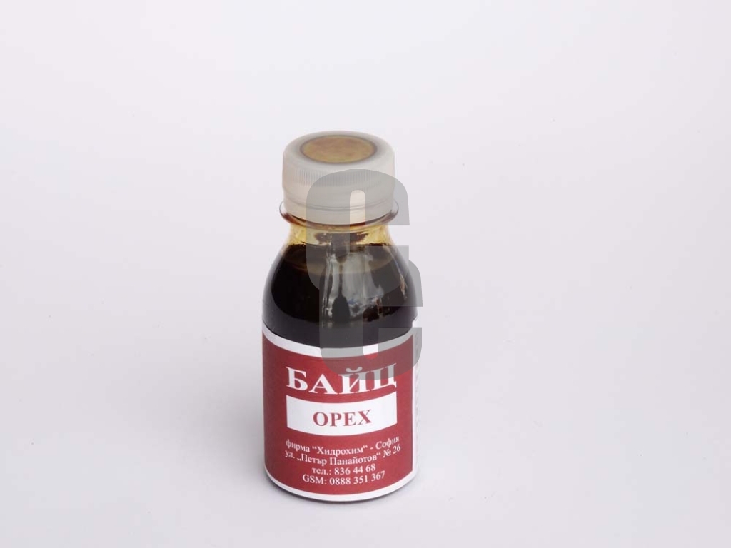 - Байц орех е висококачествена багрилна смес на органична основа, предназначена за оцветяване на дървесни повърхности в красив орехов нюанс.