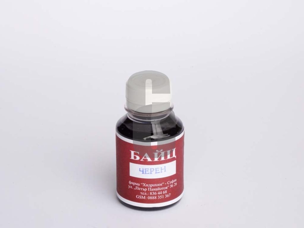 - Байц черен е висококачествена багрилна смес на органична основа, предназначена за равномерно и дълбоко оцветяване на дървесни повърхности в наситен черен цвят.