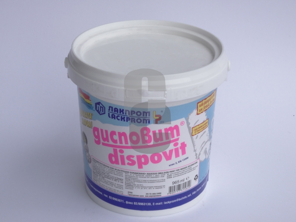Ключови думи: Дисповит 1.5 кг цена, водоразтворима боя, вътрешно боядисване, боя за здравни заведения, боя за училища, боя за детски стаи, безопасна боя, строителни материали, онлайн магазин, купете Дисповит 1.5 кг.