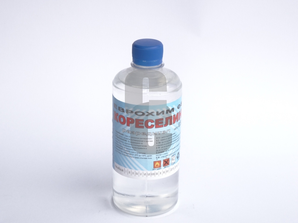 - Кореселин Еврохим 0.5 л е универсален разредител, предназначен за разреждане на бои, лакове и емайллакове на база органични разтворители.