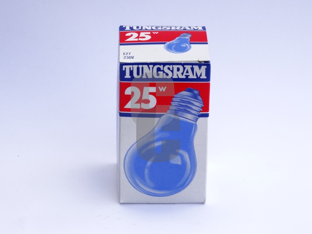 - Крушка цветна 25W – синя е обикновена лампа с нажежаема жичка и синьо оцветено стъкло, предназначена за декоративно и сигнално осветление.