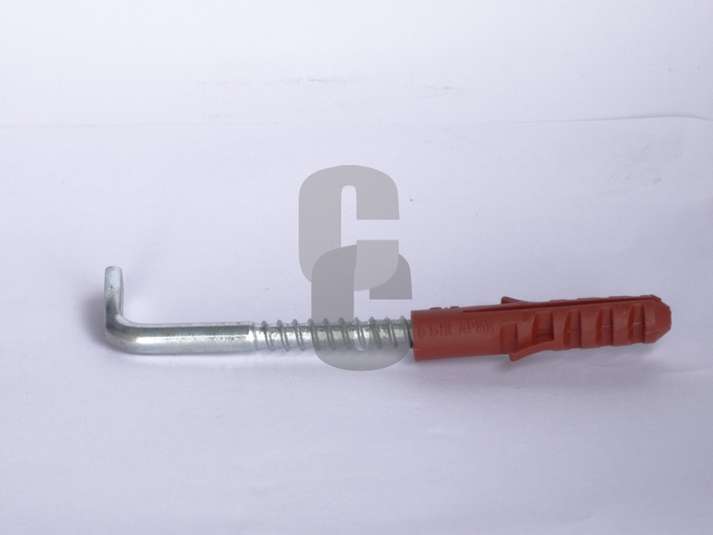 - Комплект: метална кука + пластмасов дюбел.