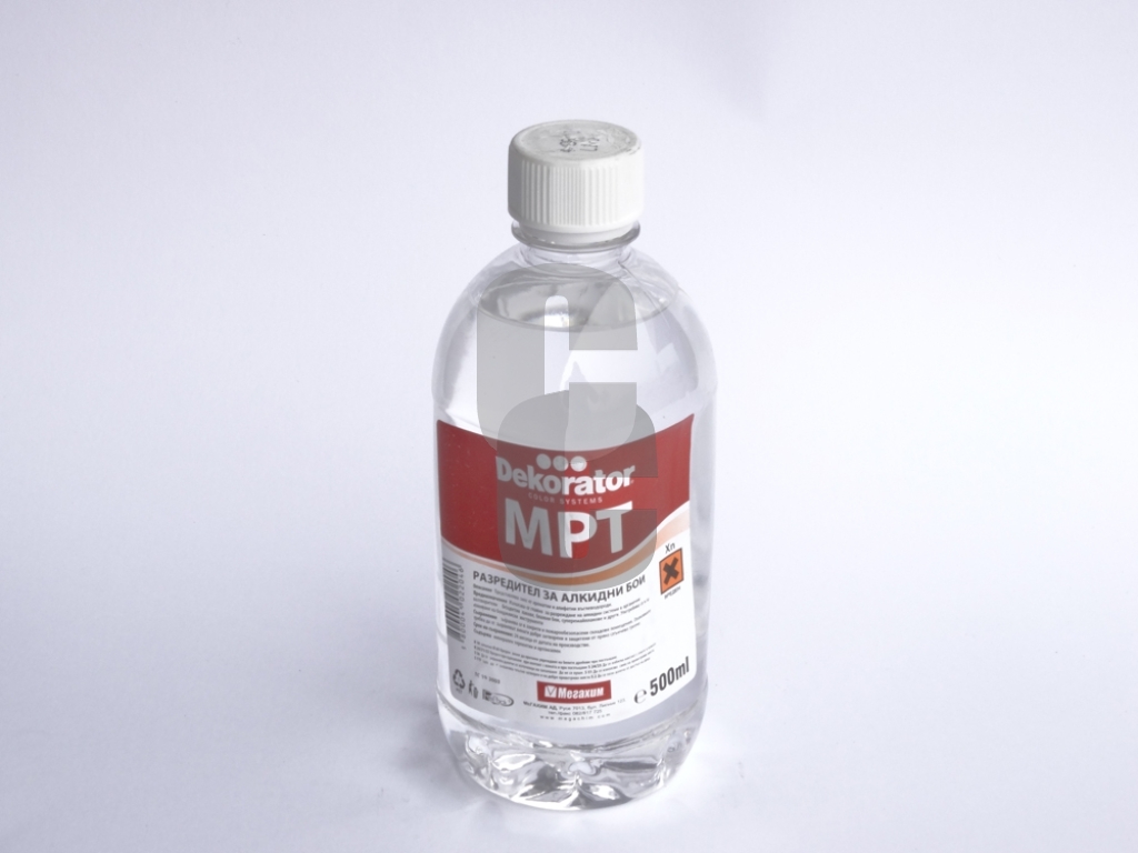 - МРТ Мегахим 0.5 л е универсален разредител, предназначен за разреждане на алкидни системи, включително блажни бои, безцветни лакове и супер емайллакове.