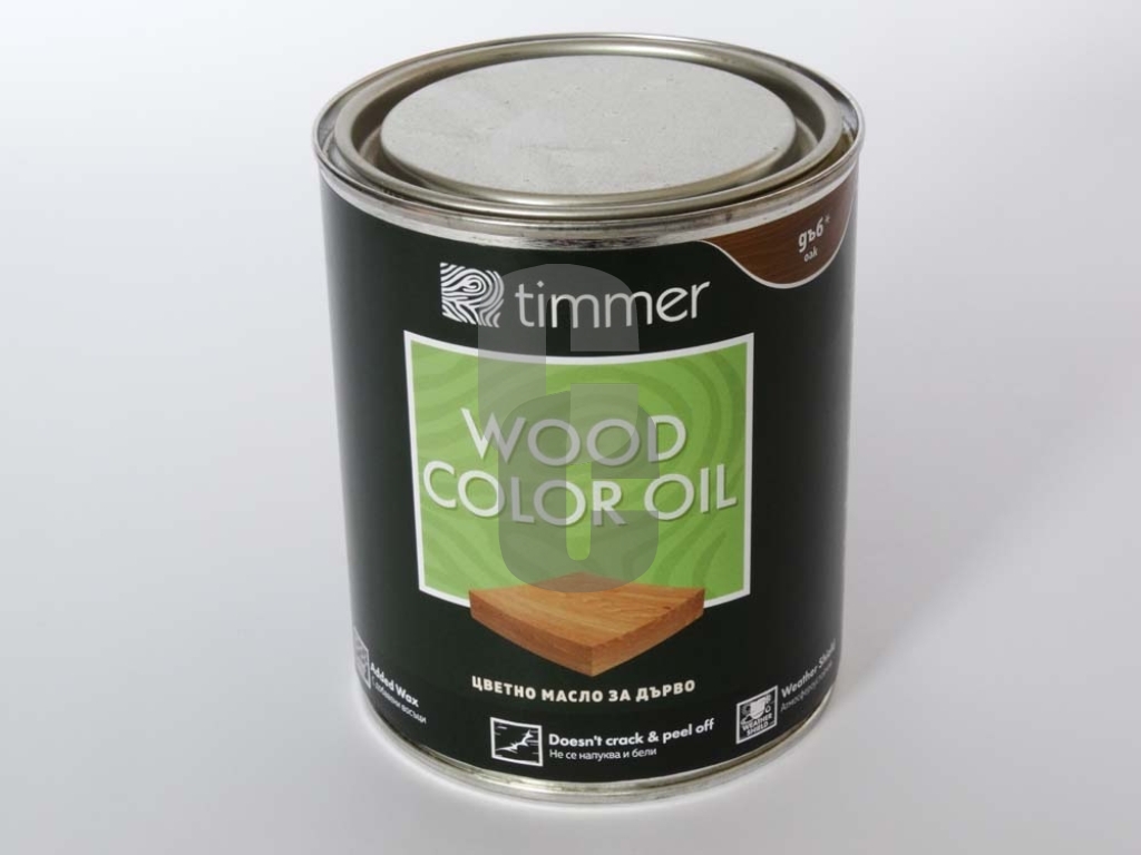 - Масло за дърво Timmer – Дъб е висококачествено цветно масло, предназначено за дълбоко проникване, защита и декоративно оцветяване на всички видове дървесина – мека и твърда, в интериорни и екстериорни условия.