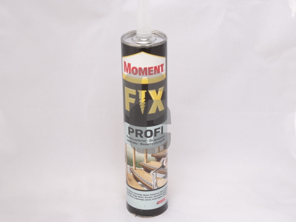 - Момент Профи Фикс е висококачествено монтажно лепило с голяма сила на сцепление, предназначено за професионална употреба както на закрито, така и на открито.