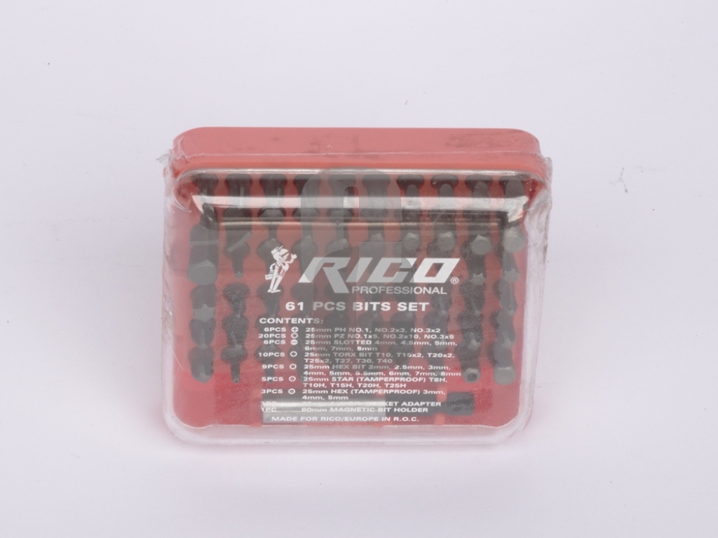 Ключови думи: накрайници рико 61 части цена, комплект битове riko цена, битове за винтоверт, накрайници за отвертка, инструменти за монтаж цена, универсален комплект накрайници, битове torx ph pz, ръчни инструменти цена, комплект инструменти.