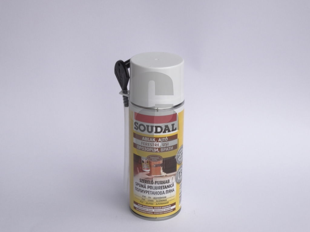 - Soudal ръчна полиуретанова пяна – малка разфасовка е еднокомпонентна PU пяна, подходяща за запълване и изолиране на фуги, кухини, отвори и пукнатини до 8 см.