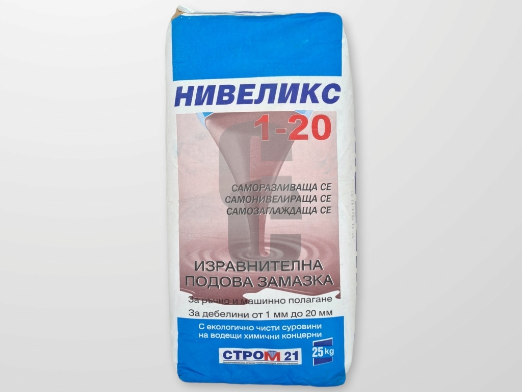 Ключови думи: саморазливна замазка nivelix цена, подова замазка 25 кг, саморазливна смес, изравнителна замазка, подготовка на под, строителни материали, замазка за подове.