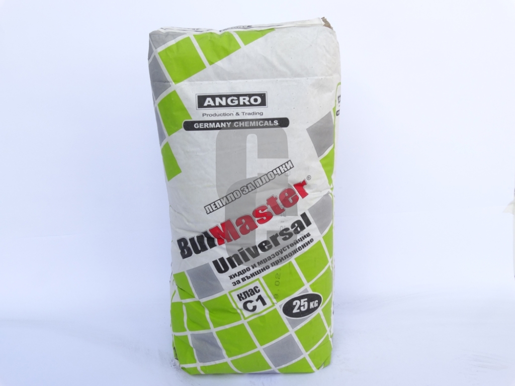 Ключови думи: Bulmaster Universal цена, универсално лепило 25 кг, теракол ангро, лепило за фаянс и теракота, лепило за гранитогрес, строителни материали, монтаж на плочки, лепило C1.