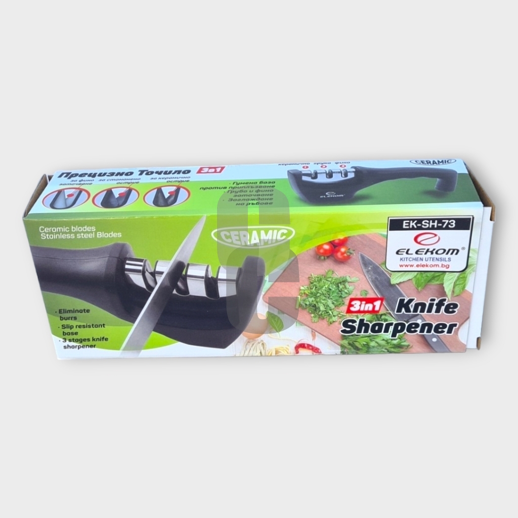 Ключови думи: точило за ножове цена, ЕЛЕКОМ EK-SH-73 цена, точило 3 в 1, кухненско точило цена, керамично точило за ножове, ръчно точило за ножове, домакински потреби цена, аксесоари за кухня, заточване на ножове цена, точило Elekom цена.