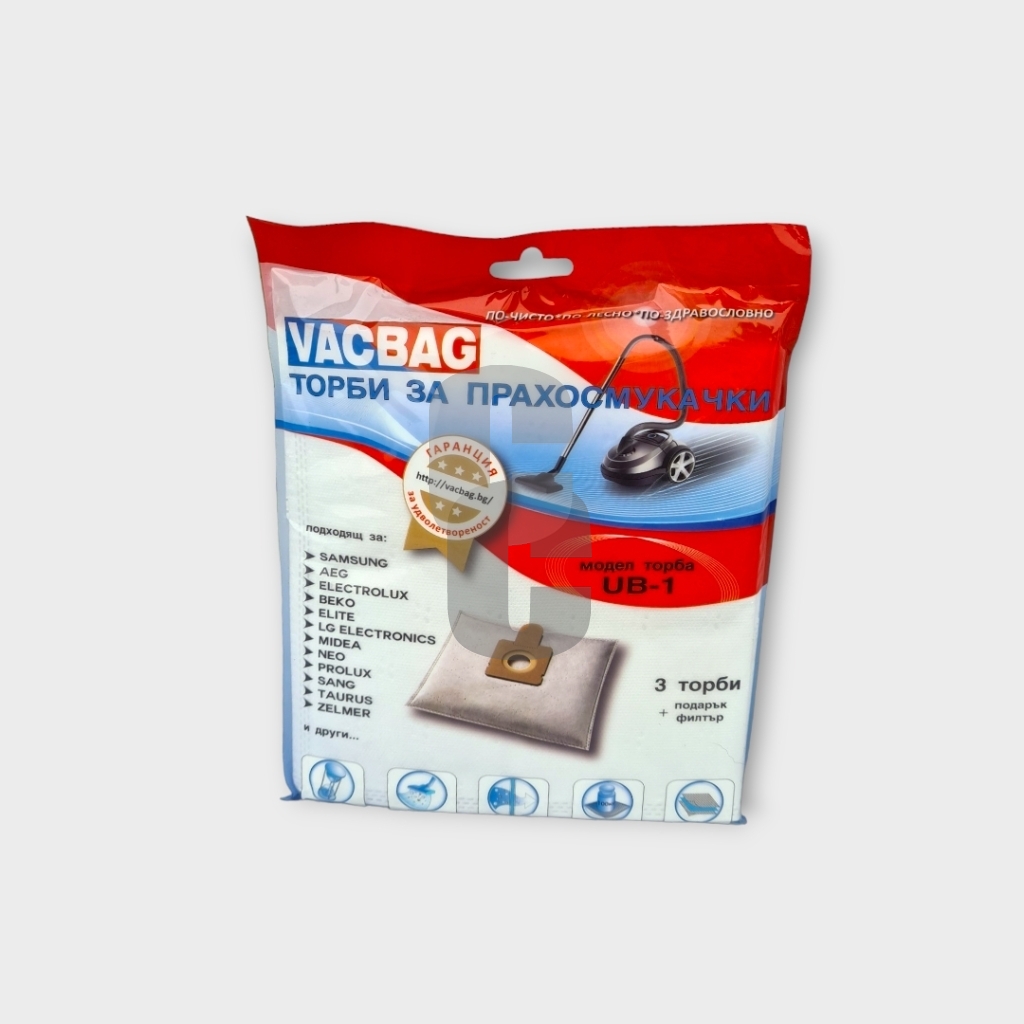 - Универсални торби за прахосмукачка UB-1 VACBAG са предназначени за надеждно събиране на прах, фини частици и замърсявания при ежедневна употреба.